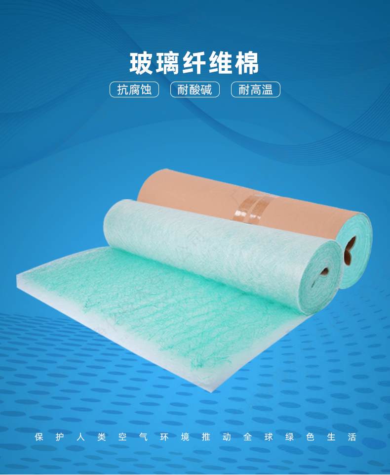 ?玻纖棉的迎風面為綠色,出風面為白色。